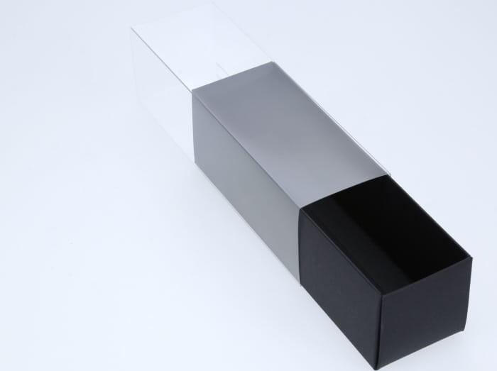This macaron box comes to life when filled with colourful macarons. This versatile box has a broad range of uses, from packaging macarons, to chocolates, to truffles, to all of your tiny food packaging needs. Our Black Designer Range features a matte black box with a clear plastic slide cover. These dessert boxes are ideal for weddings, birthdays, corporate event gifts, or for selling as a macaron retailer. The boxes are made from high-quality 350gsm paperboard, 100% Food Grade Recycled Paper.